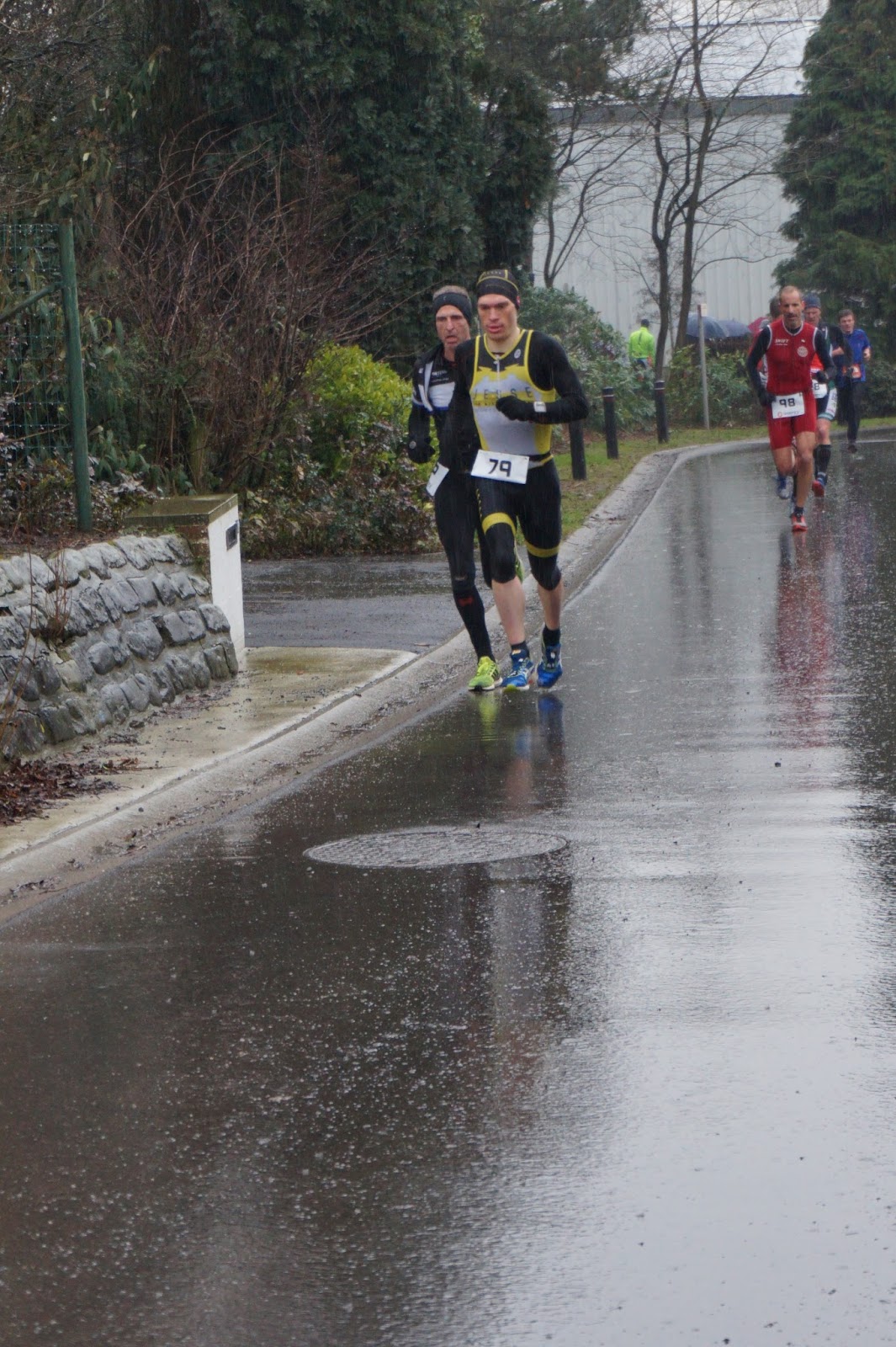 Tournant ging er in de eerste run als een speer vandoor. Ik had het traditioneel wat moeilijker in de eerste kilometer, maar kon al vlug opschuiven en me in het zog van betere lopers als Bart Rosseels, Jan Goddaer en Kevin Strubbe nestelen. Het lastige trailparcours over twee ronden van twee kilometer zorgde voor de nodige verbrokkeling en in de eerste wisselzone bedroeg mijn achterstand op Tournant een minuut. Ik liep nochtans verre van slecht...
